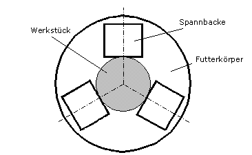 An der Drehmaschine stellt sich folgendes Problem, dem wir uns in unserer Arbeit widmeten. Je schneller sich Werkstück und Futter drehen, desto größer werden die auf das Spannfutter wirkenden Fliehkräfte. Dies führt bei konventionellen Drei-Backenfuttern dazu, daß sich die Spannkräfte zwischen Backen und Werkstück drastisch reduzieren.